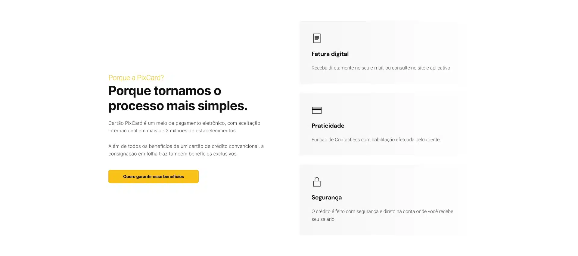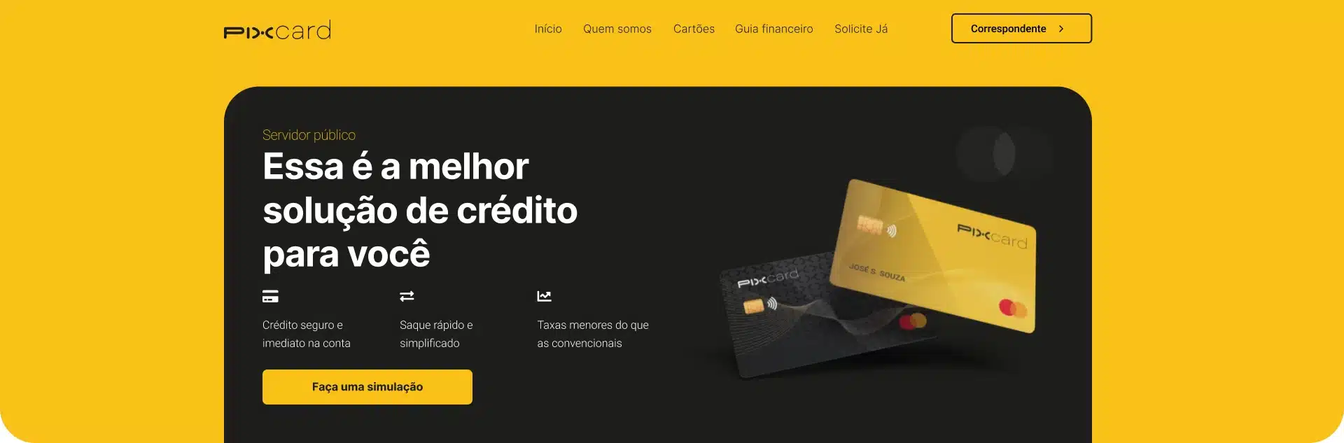 A PixCard é uma empresa especializada em soluções de crédito, oferecendo alternativas rápidas e seguras para atender às necessidades financeiras dos clientes. Com foco em praticidade, facilitamos o acesso ao crédito de forma simples e eficiente.